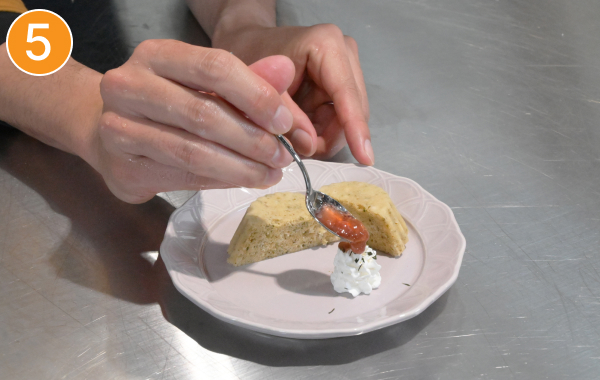 - 粗熱が取れたらお好みで生クリームとジャムをトッピングして完成